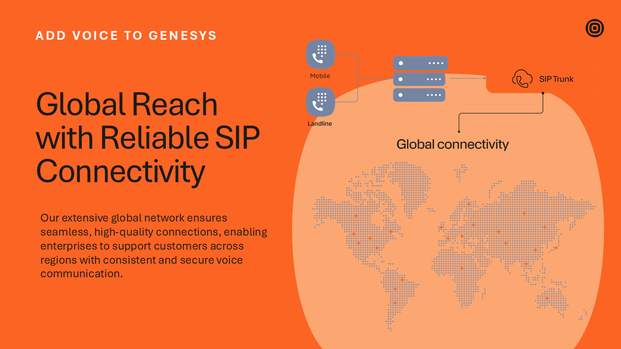 Genesys PureCloud Trunks, powered by Infobip SIP, provide a comprehensive solution for contact centers aiming to deliver high-quality, reliable voice communications to customers worldwide. Infobip’s SIP integration with Genesys PureCloud ensures low-latency, secure voice calls, allowing customer service teams to connect with clients seamlessly and efficiently.